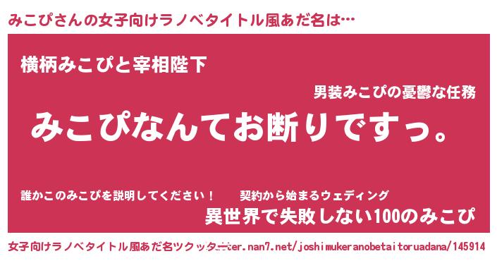| 男性向けラノベタイトル風あだ名 | 『魔法科高校のみこぴ』 |