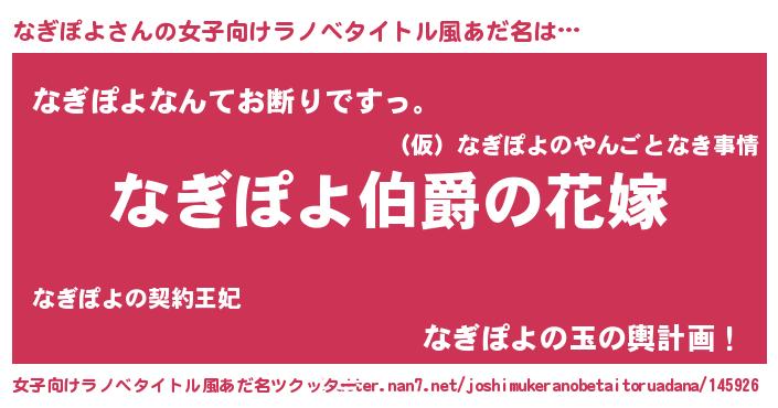 | 男性向けラノベタイトル風あだ名 | 『やはりなぎぽよの青春ラブコメはまちがっている 』 |