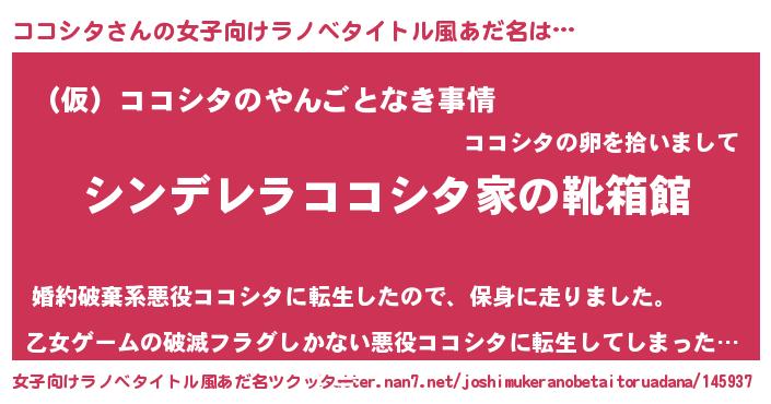 | 男性向けラノベタイトル風あだ名 | 『冴えないココシタの育てかた』 |