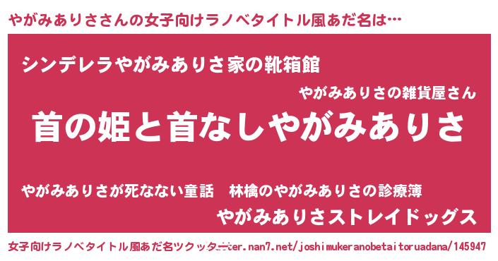 | 意味不明あだ名 | 『自称やがみありさ』 |
