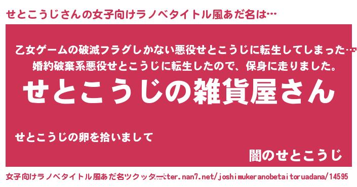 | 胡散臭い通販商品みたいなあだ名 | 『幸せが訪れる高級そうな皿…その名も「せとこうじ」』 |