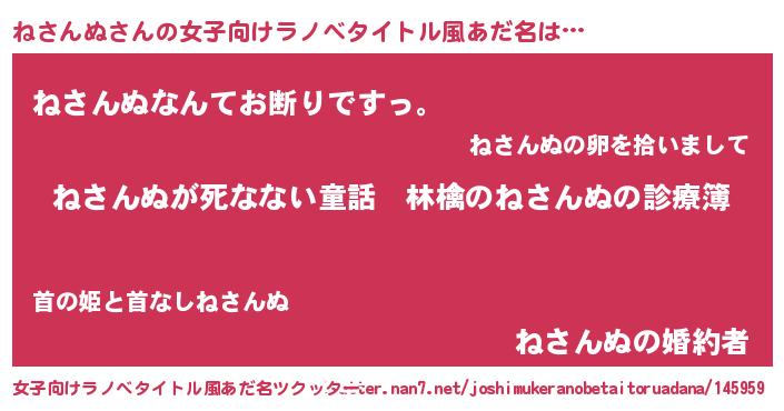 | 料理風あだ名 | 『ねさんぬのカルパッチョ風』 |