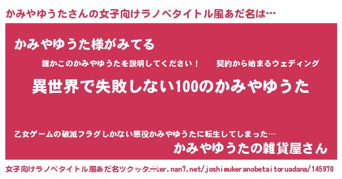 | 男性向けラノベタイトル風あだ名 | 『かみやゆうたという概念が存在しない退屈な世界 』 |