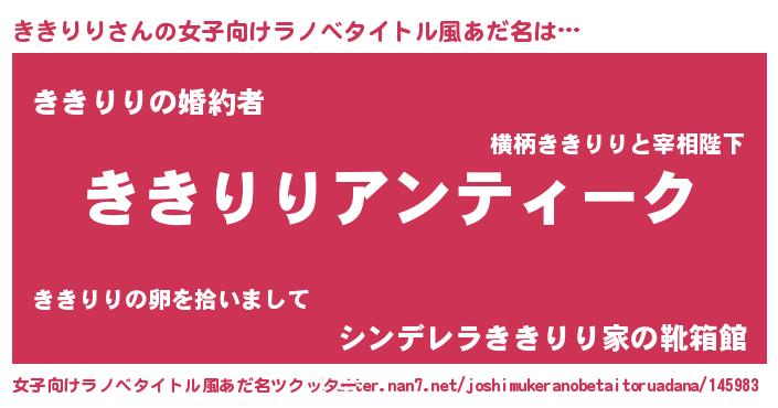 | 意味不明あだ名 | 『自称ききりり』『ききりりフォーエバー』 |