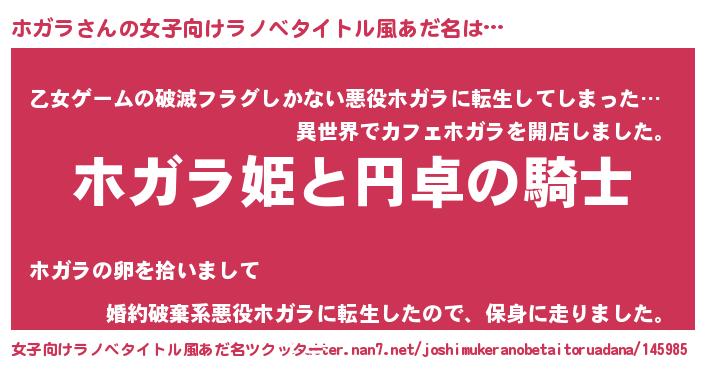 | 男性向けラノベタイトル風あだ名 | 『ホガラアートオンライン』 |