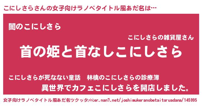 | ヘコむあだ名 | 『こにしさら(遠い目)』『なまこ酢』 |