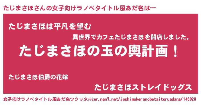 | 男性向けラノベタイトル風あだ名 | 『たじまさほ~年齢イコール彼女いない歴の魔法使い~』 |