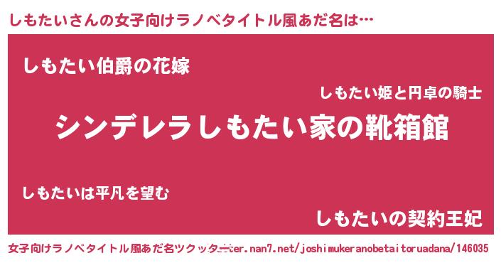 | 男性向けラノベタイトル風あだ名 | 『冴えないしもたいの育てかた』 |