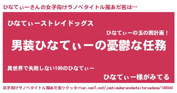 | 男性向けラノベタイトル風あだ名 | 『うちのひなてぃーが世界を掌握している!』 |