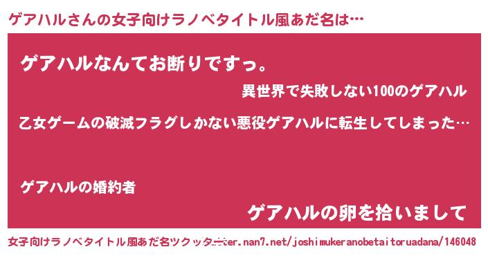 | 意味不明あだ名 | 『住所不定無職ゲアハル(14歳)』 |