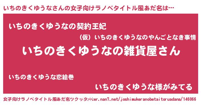 | 男性向けラノベタイトル風あだ名 | 『やはりいちのきくゆうなの青春ラブコメはまちがっている 』 |
