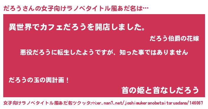 | 胡散臭い通販商品みたいなあだ名 | 『あなたにだけ特別に提供する100年もののヴィンテージワイン…その名も「だろう」』 |