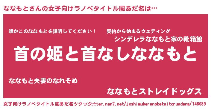 | 男性向けラノベタイトル風あだ名 | 『はたらくななもとさま!』 |