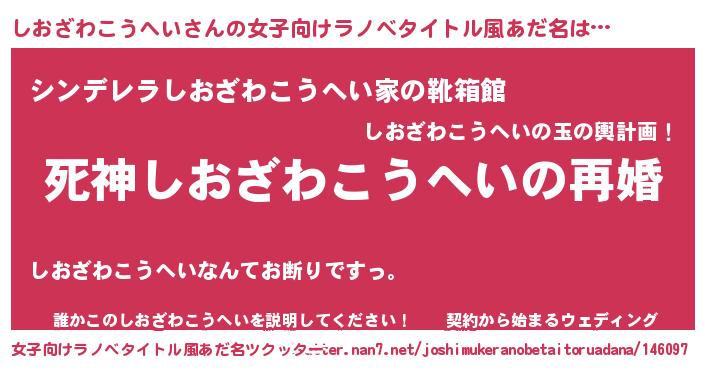 | 男性向けラノベタイトル風あだ名 | 『ノーゲーム・ノーシオザワコウヘイ』 |