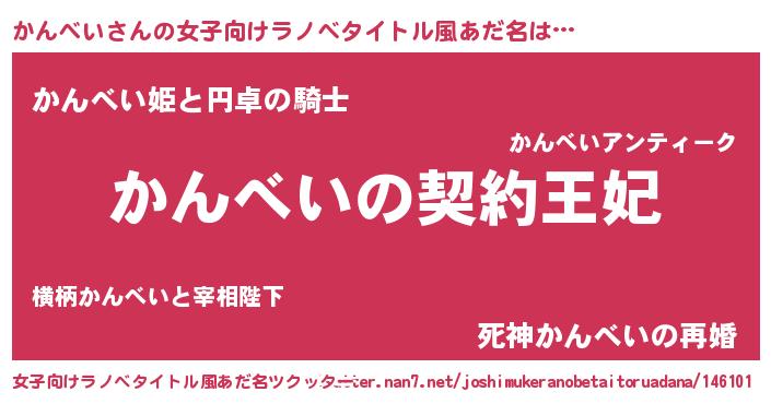 | 男性向けラノベタイトル風あだ名 | 『誰もが恐れるあのかんべいが、ぼくの専属メイドになるようです。』 |