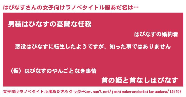 | 男性向けラノベタイトル風あだ名 | 『この素晴らしい世界にはぴなすを!』 |