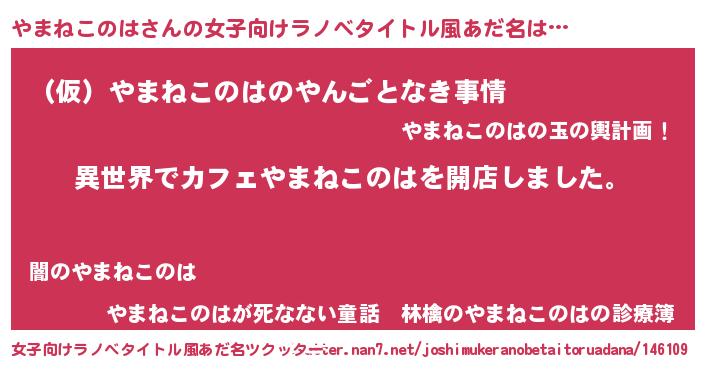 | 男性向けラノベタイトル風あだ名 | 『誰もが恐れるあのやまねこのはが、ぼくの専属メイドになるようです。』 |
