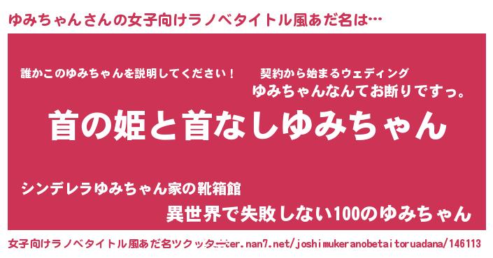 | 男性向けラノベタイトル風あだ名 | 『はたらくゆみちゃんさま!』 |