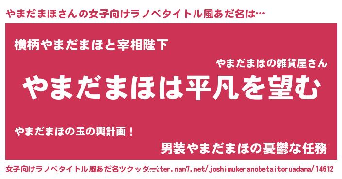 | 男性向けラノベタイトル風あだ名 | 『ダンジョンにやまだまほを求めるのは間違っているだろうか』 |