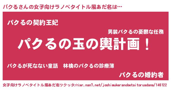 | 男性向けラノベタイトル風あだ名 | 『転生したらパクるだった件』 |