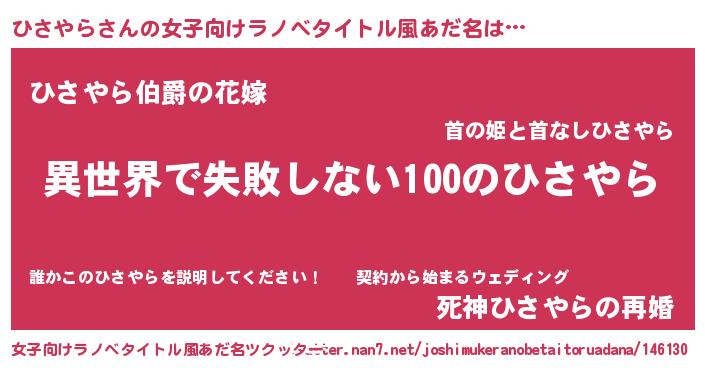 | 男性向けラノベタイトル風あだ名 | 『ひさやらという概念が存在しない退屈な世界 』 |
