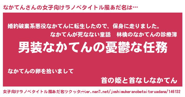 | 胡散臭い通販商品みたいなあだ名 | 『あなたにだけ特別に提供する100年もののヴィンテージワイン…その名も「なかてん」』 |