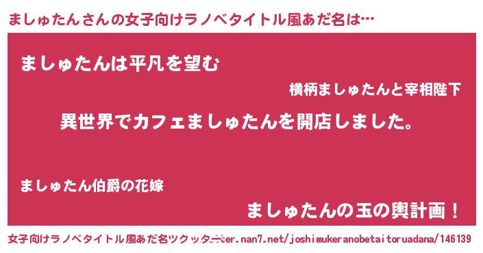 | 胡散臭い通販商品みたいなあだ名 | 『前代未聞の健康食品…その名も「ましゅたん」』 |