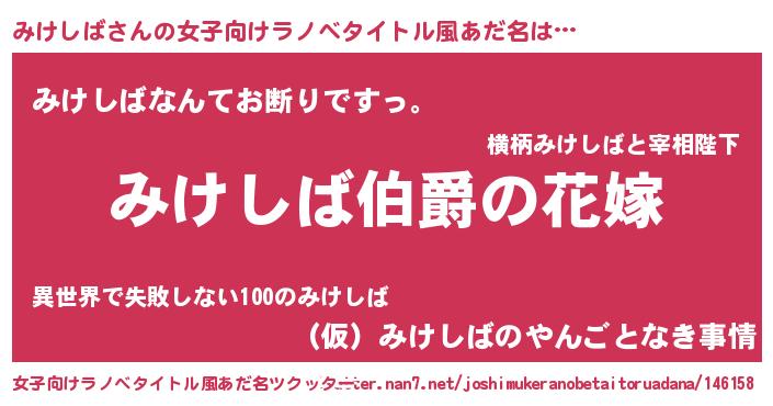 | 意味不明あだ名 | 『みけしばフォーエバー』『自称みけしば』 |
