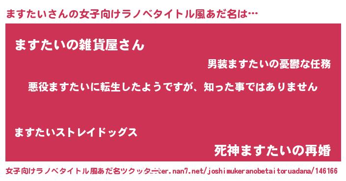 | 男性向けラノベタイトル風あだ名 | 『この素晴らしい世界にますたいを!』 |