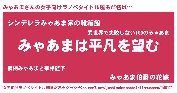 | 胡散臭い通販商品みたいなあだ名 | 『信頼と実績のペンダント…その名も「みゃあま」』 |