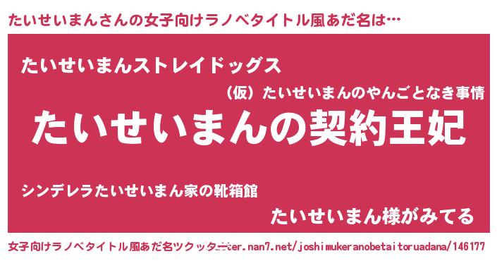 | 男性向けラノベタイトル風あだ名 | 『たいせいまんという概念が存在しない退屈な世界 』 |