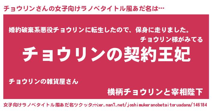| 男性向けラノベタイトル風あだ名 | 『チョウリンという概念が存在しない退屈な世界 』 |