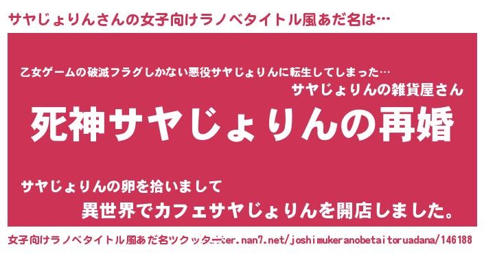 | 伝説のあだ名 | 『救世主となる錬金術士サヤじょりん』 |