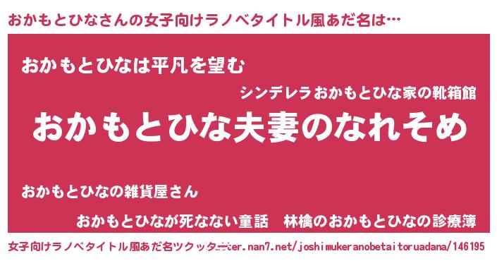 | 男性向けラノベタイトル風あだ名 | 『おまえをオタクにしてやるから、俺をおかもとひなにしてくれ! 』 |