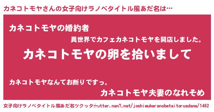 | 男性向けラノベタイトル風あだ名 | 『ダンジョンにカネコトモヤを求めるのは間違っているだろうか』 |