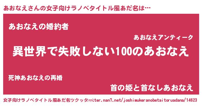 | 胡散臭い通販商品みたいなあだ名 | 『絶対に幸福をもたらす水素水…その名も「あおなえ」』 |