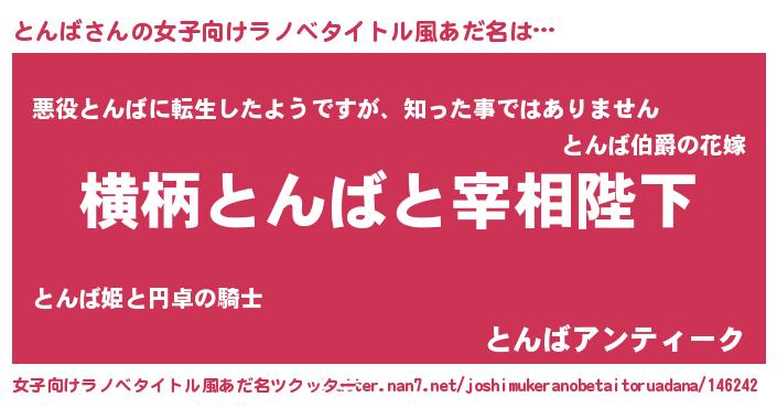 | 男性向けラノベタイトル風あだ名 | 『とんばに滅ぼされるだけの簡単なお仕事です』 |