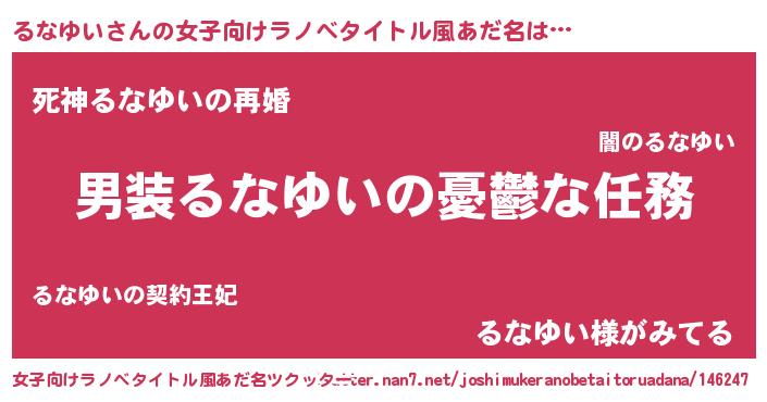 | 男性向けラノベタイトル風あだ名 | 『うちのるなゆいが世界を掌握している!』 |