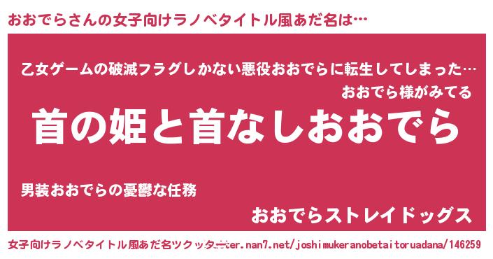 | 意味不明あだ名 | 『住所不定無職おおでら(53歳)』 |
