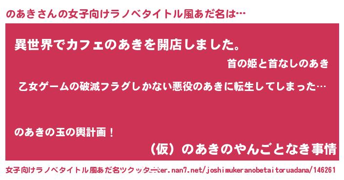 | ヘコむあだ名 | 『のあき(震え声)』『のあにゅー』 |