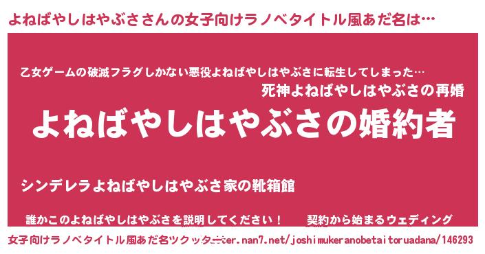 | 胡散臭い通販商品みたいなあだ名 | 『運命の人と巡り会える高級そうな壺…その名も「よねばやしはやぶさ」』 |