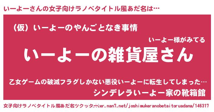 | 男性向けラノベタイトル風あだ名 | 『やはりいーよーの青春ラブコメはまちがっている 』 |