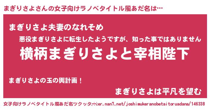 | 男性向けラノベタイトル風あだ名 | 『まぎりさよに滅ぼされるだけの簡単なお仕事です』 |