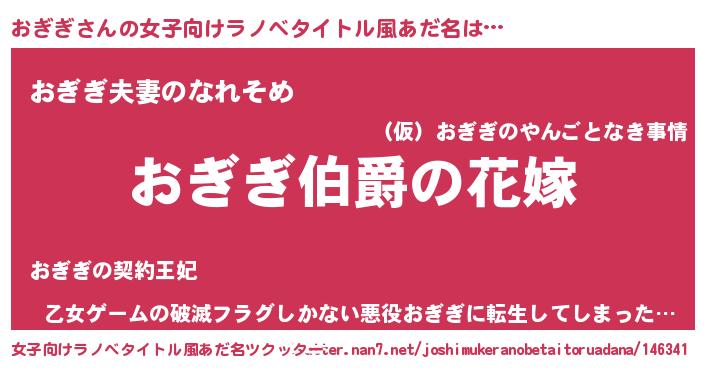 | 男性向けラノベタイトル風あだ名 | 『うちの娘の為ならば、俺はもしかしたらおぎぎも倒せるかもしれない。』 |