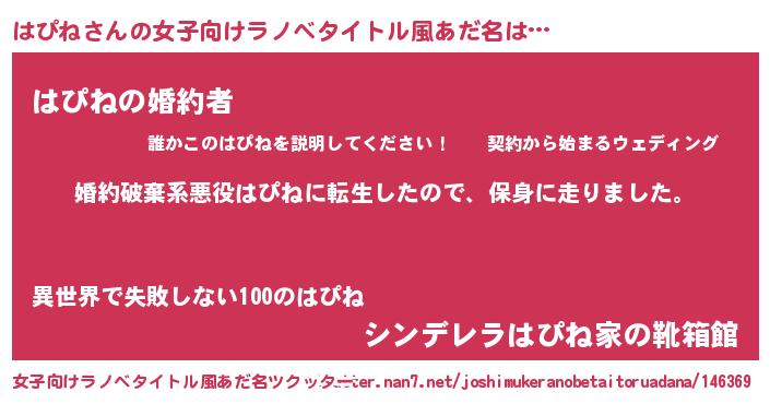 | 男性向けラノベタイトル風あだ名 | 『ハピネスレイヤー』 |