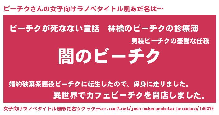 | 男性向けラノベタイトル風あだ名 | 『Re:ビーチクから始める異世界生活』 |