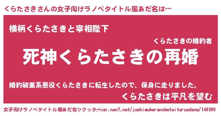 | 男性向けラノベタイトル風あだ名 | 『ノーゲーム・ノークラタサキ』 |