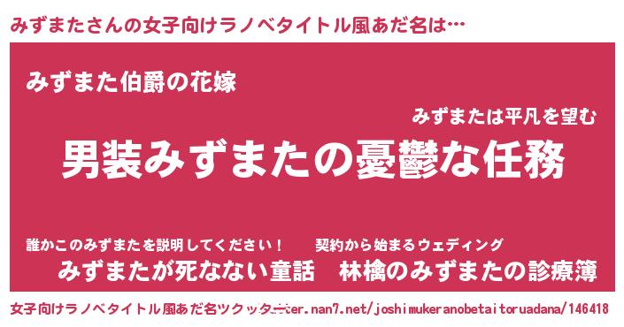 | 男性向けラノベタイトル風あだ名 | 『うちのみずまたが世界を掌握している!』 |