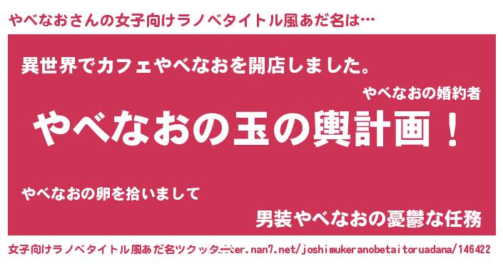 | 胡散臭い通販商品みたいなあだ名 | 『来世でも幸せになれる健康食品…その名も「やべなお」』 |