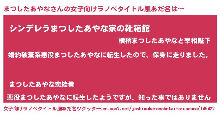 | 男性向けラノベタイトル風あだ名 | 『転生したらまつしたあやなだった件』 |